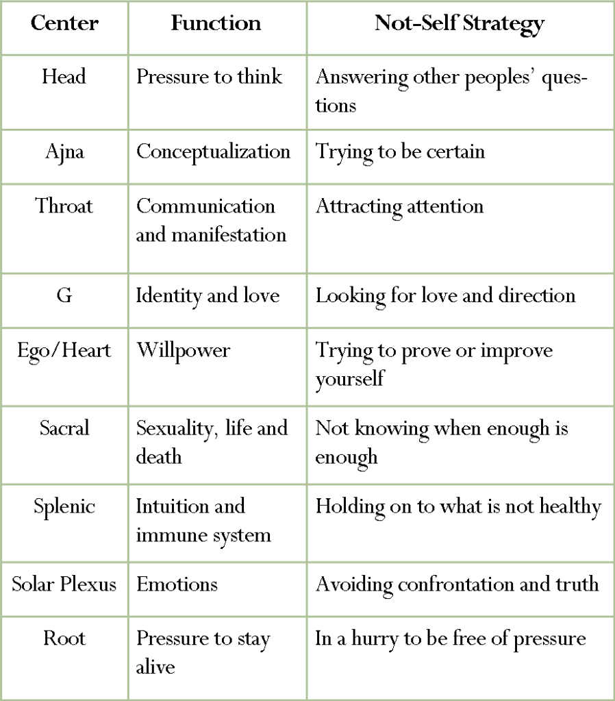 For example, people with open solar plexus centers, the seat of emotions, are frequently attracted to people with a defined solar plexus center. Open centers take in energy from other people and amplify it. Without understanding this, the open solar plexus person can get carried away with an emotion such as anger and lash out at others. By recognizing that this feeling is actually someone else’s, the open solar plexus person can simply observe the feeling without identifying with it or acting on it. This can lead to the development of wisdom about the emotions of others.
