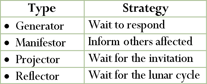 There are many kinds of inner authority, however, the main classifications are splenic, sacral, and emotional. The combination of strategy and inner authority allow us to make decisions that are compatible with our genetic makeup.